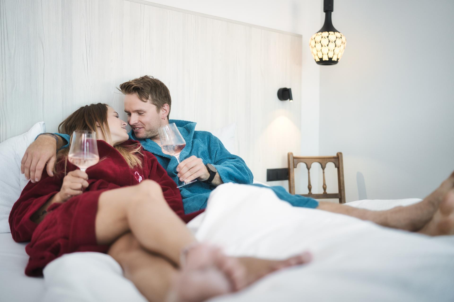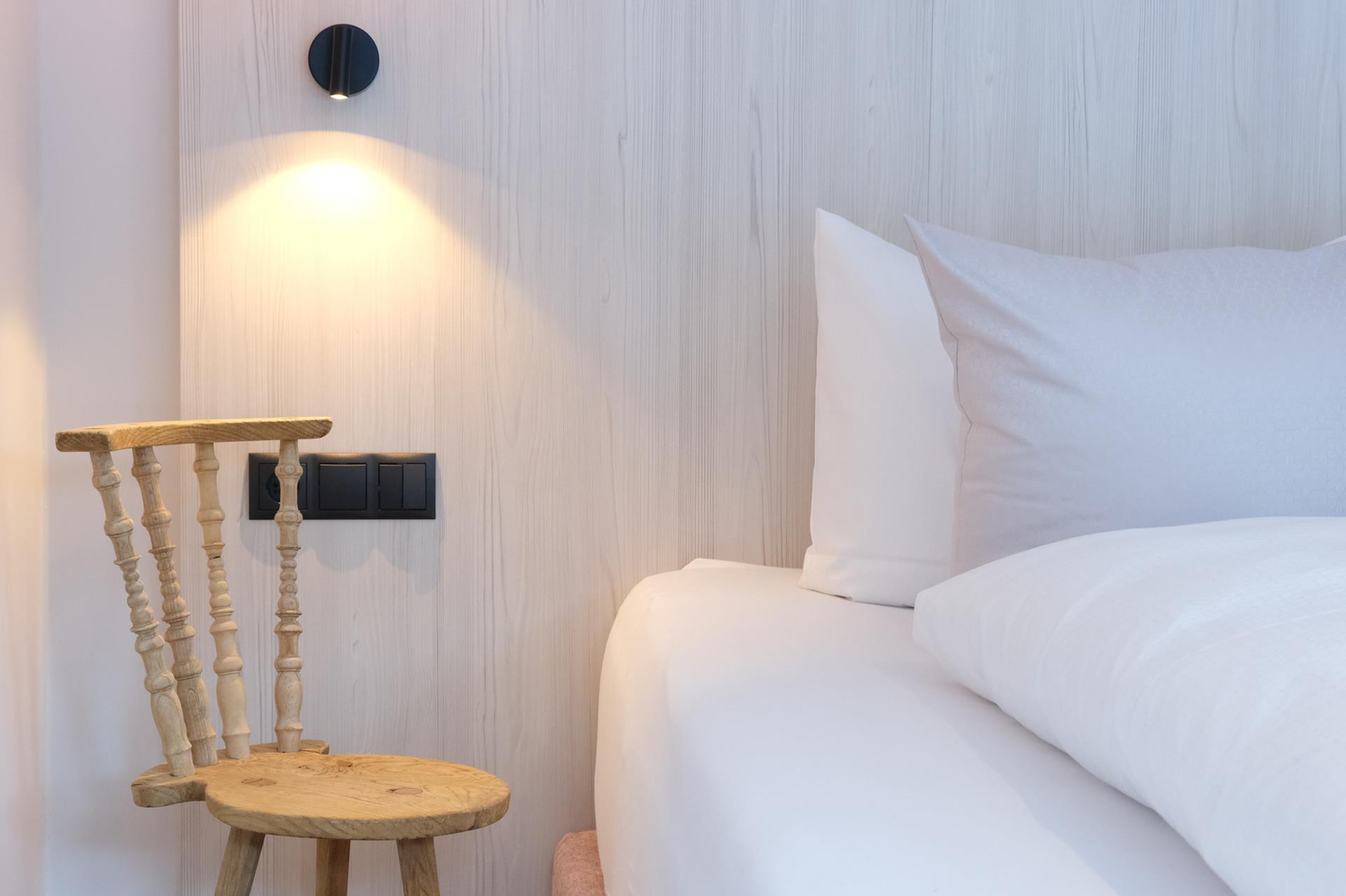 In these spacious, approx. 28 m² rooms you can enjoy a magnificent view of the Tyrolean mountains from your bed. The special highlight of this room category is an upholstered reclining window.